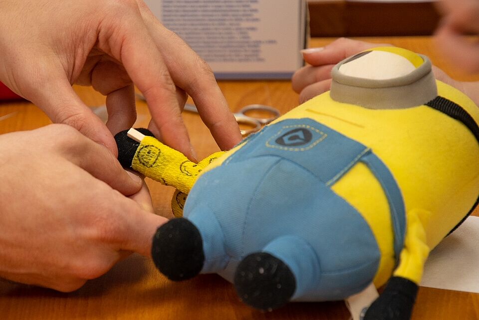 In Kurzvorträgen konnten sich Interessierte zur Ersten Hilfe informieren: Themen waren beispielsweise die Herz-Druck-Massage bei Kindern sowie Verbände. In zwei Live-Vorführungen konnten die Besucherinnen und Besucher erleben, wie eine Rettung genau abläuft und was Ersthelferinnen und Ersthelfer in kritischen Situationen tun können. Die ehrenamtlichen Helferinnen und Helfer bastelten und spielten außerdem mit den Kindern. Die jungen Gäste konnten sich zudem Wunden schminken lassen.