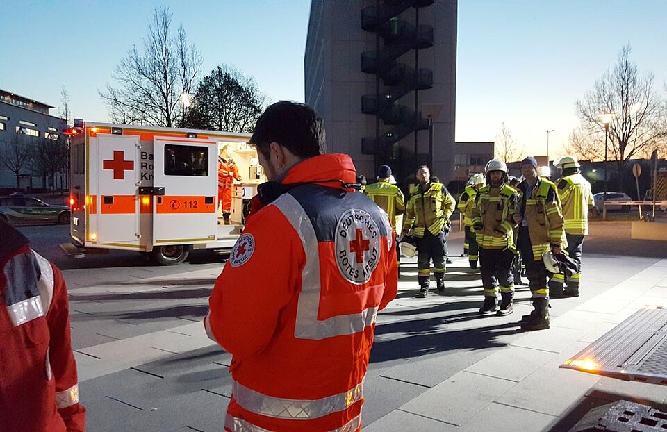 Da viele Mitarbeiter über Reizhusten, Atemwegsreizungen, Übelkeit und Kopfschmerzen klagten, alarmierte der zuerst eingetroffene Rettungswagen neben Feuerwehr und ABC-Zug auch je eine ehrenamtliche Schnelleinsatzgruppe Behandlung und Transport des Münchner Roten Kreuzes.