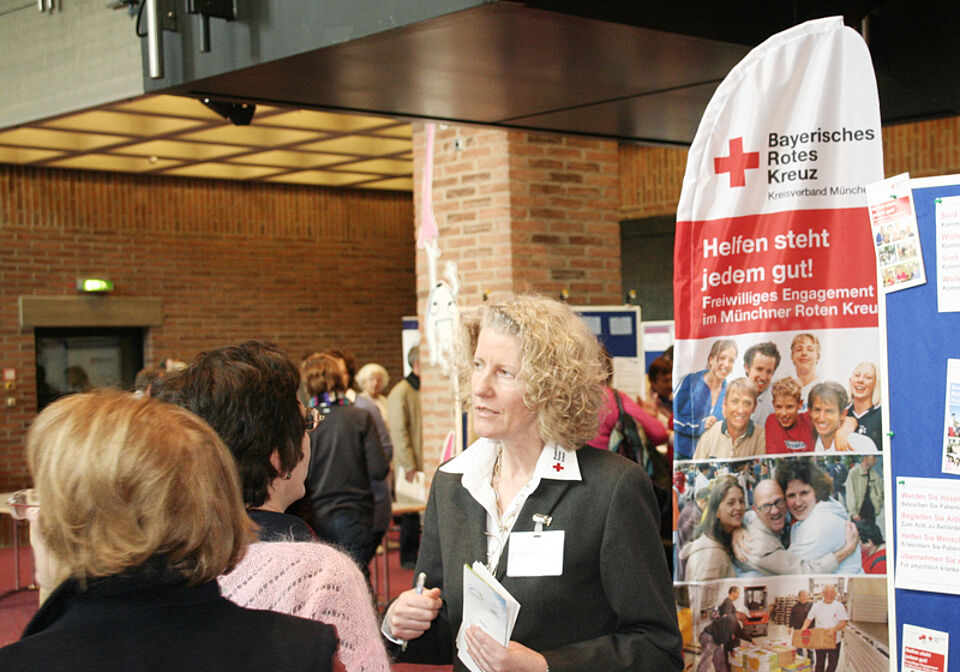 Etwa 4500 Besucherinnen und Besucher kamen heute in den Münchner Gasteig, um sich auf der Freiwilligenmesse über ehrenamtliches Engagement in München zu informieren. Das Münchner Rote Kreuz zeigte zusammen mit 80 anderen Ausstellern, was ehrenamtlich möglich ist. Und so informierten sich die Besucher beim Roten Kreuz über Einsatzmöglichkeiten in Seniorenheimen, Kindergärten, den Einsatzdiensten von Bergwacht, Bereitschaften und Wasserwacht oder beim Jugendrotkreuz und den berufsvorbereitenden Bildungsmaßnahmen.