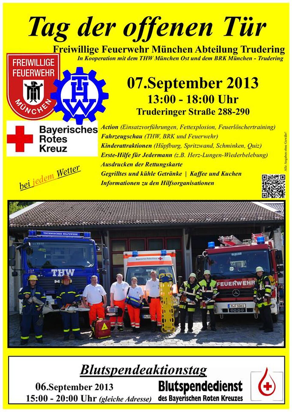 Am Samstag, den 07.September findet dann in der Truderinger Straße 288-290 von 13 bis 18 Uhr gemeinsam mit Feuerwehr und THW ein Tag der offenen Tür statt.