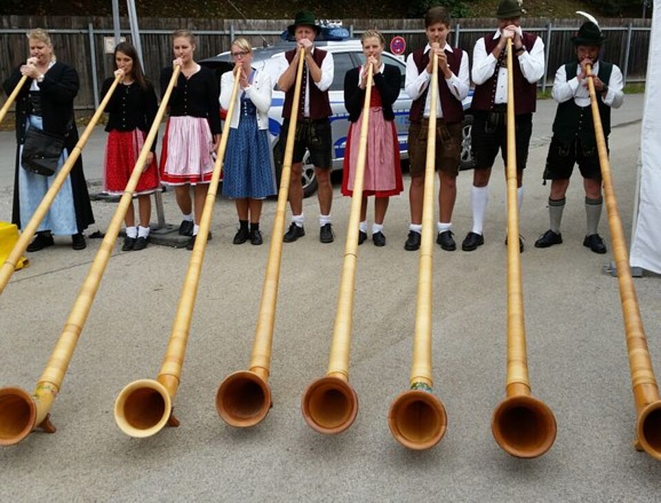 Einen tolle Überraschung bereiteten am 2. Wiesn-Sonntag die Kaltentaler Alphornbläser aus dem Allgäu und die Alphorngruppe des Musikvereins Thaining e. V. in Oberbayern den Einsatzkräften auf der BRK-Sanitätsstation. Mit einem spontanen Alphornblaskonzert bedankten sich die Musiker für das Engagement des Münchner Roten Kreuzes und munterten die Ärzte und ehrenamtlichen Helfer auf, auch die zweite Wiesn-Halbzeit gut gelaunt zu meistern.