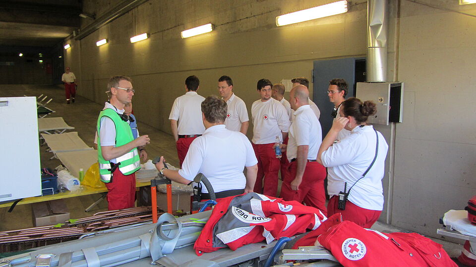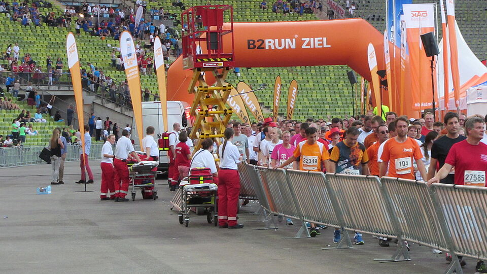 Zusammen mit weiteren Kollegen aus den Bereitschaften des Münchner Roten Kreuzes wurde der Zieleinlauf betreut. Trotz des schwülwarmen Wetters benötigten nur wenige Läufer medizinische Hilfe.
