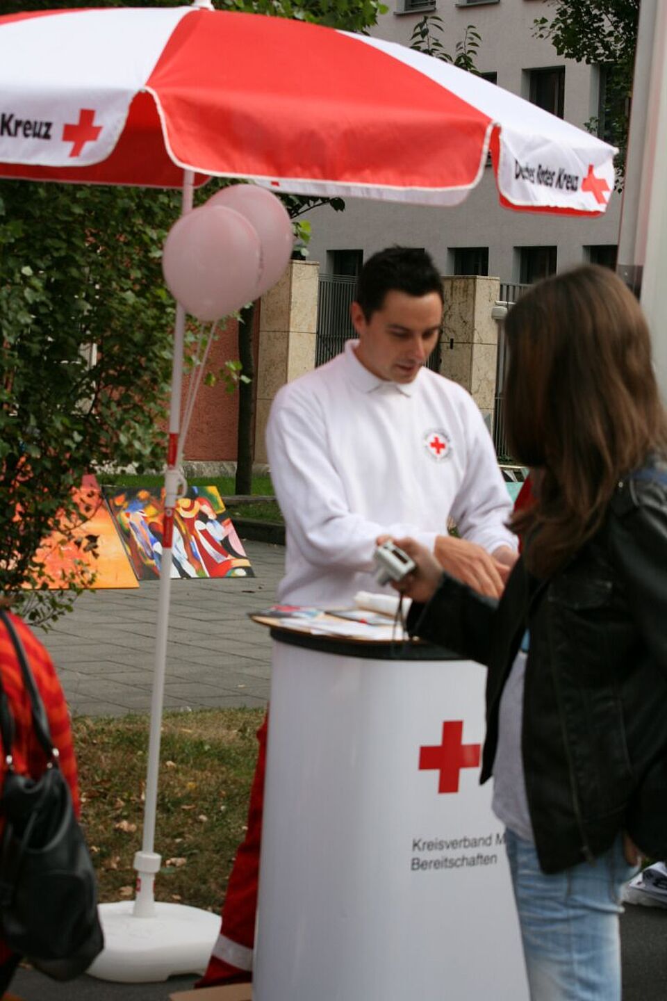 Sehr gerne nahmen auch die rund 350 Besucher das Angebot wahr, sich ihren Blutzucker, Blutdruck, Puls sowie Blutsauerstoffsättigung messen zu lassen. Außerdem standen wir Interessierten Rede und Antwort zu den vielfältigen Tätigkeitsbereichen des Münchener Roten Kreuzes sowie zu Förder- und aktiver Mitgliedschaft im BRK.