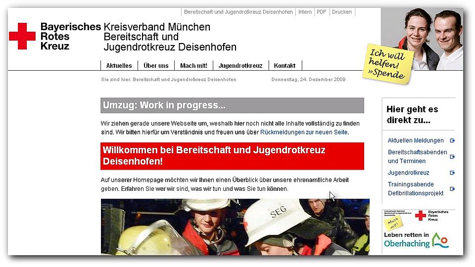 "Kaum zu glauben, dass das schon sieben Jahre her sein soll", staunt Thomas Frimmer, Leiter der Bereitschaft Deisenhofen. "Nach so vielen Jahren war es an der Zeit, den Internetauftritt zu überarbeiten."