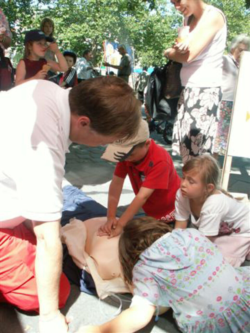 Auch Kinder ließen sich die Herzlungenwiederbelebung an einer Puppe zeigen.