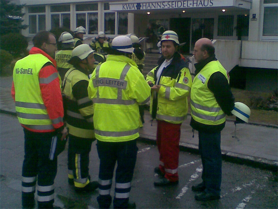Bei einem Brand in einer Wohnung des Altenwohnheims "Hanns-Seidel-Haus" in Ottobrunn wurden vier Menschen verletzt, 14 Betroffene mussten zeitweilig ihre Wohnungen verlassen. Das Münchner Rote Kreuz unterstützte den Rettungsdienst durch mehrere ehrenamtliche Helfer, die unter anderem als