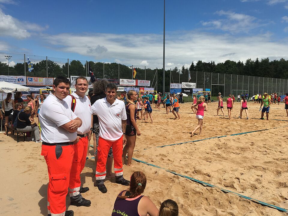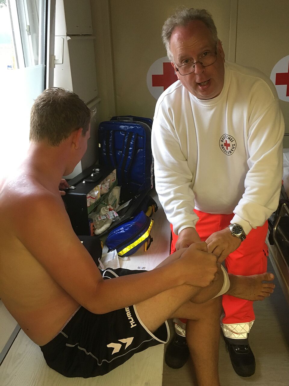 Die Sanitätsstation war dann auch eine gute Anlaufstelle für Verletzt: Insgesamt leisteten die Sanitäter 73 Mal Hilfe. In den meisten Fällen blieb es bei leichteren Schürfwunden, Prellungen oder Bänderzerrungen, die fachgerecht mit Salbenverbänden und Coolpacks versorgt wurden. Vereinzelt wurde Sportlern mit Erschöpfungszuständen eine vorrübergehende Ruhe verordnet sowie, auf Grund der Hitze, mehr Flüssigkeitsaufnahme angeraten. Zwei Sportler mussten zur weiteren Versorgung vom Rettungsdienst ins Krankenhaus transportiert werden.