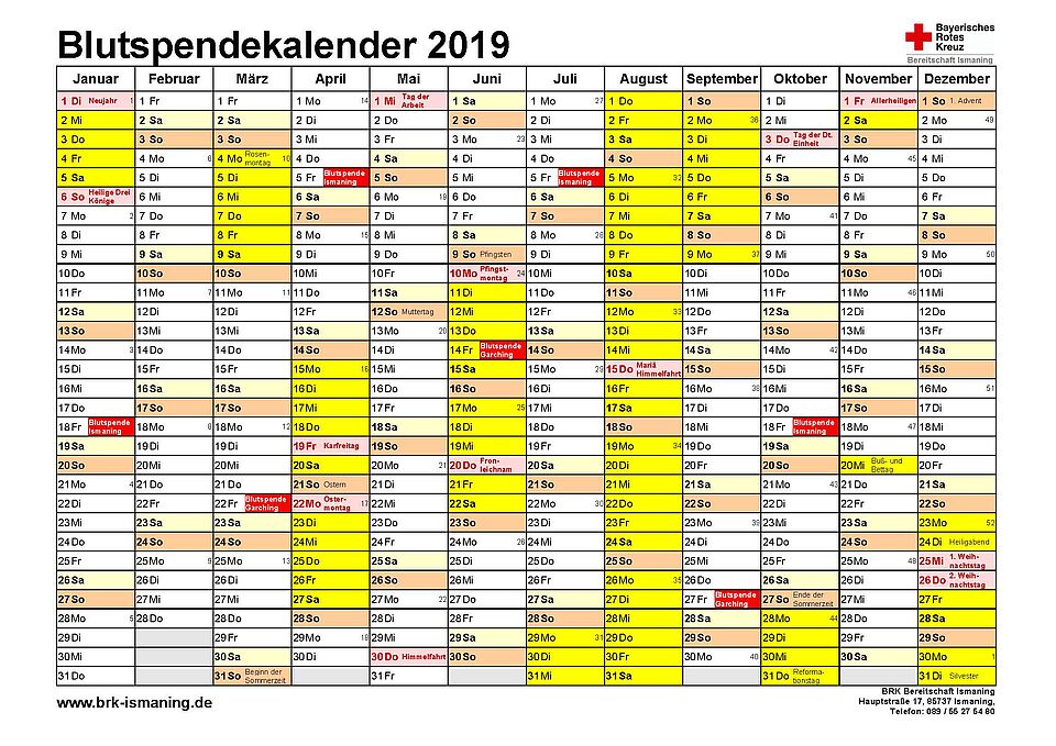 Im nächsten Jahr wird die BRK Bereitschaft Ismaning insgesamt sieben Blutspendetage unter der Leitung des stellvertretenden Bereitschaftsleiters Thomas Angenendt durchführen. Neben vier Freitagen in Ismaning sind erstmals auch drei Freitage in Garching geplant. Die Gemeinde Ismaning und die Stadt Garching unterstützen dabei und stellen mit der Osterfeldhalle in Ismaning und dem Werner-Heisenberg-Gymnasium in Garching die Räumlichkeiten kostenfrei zur Verfügung.