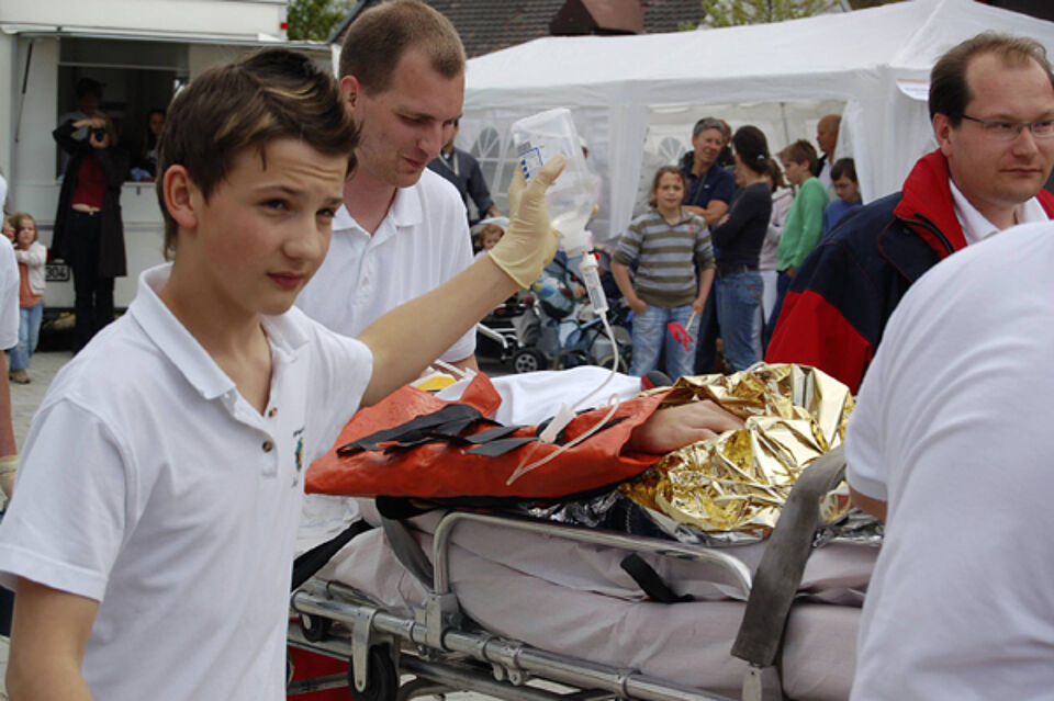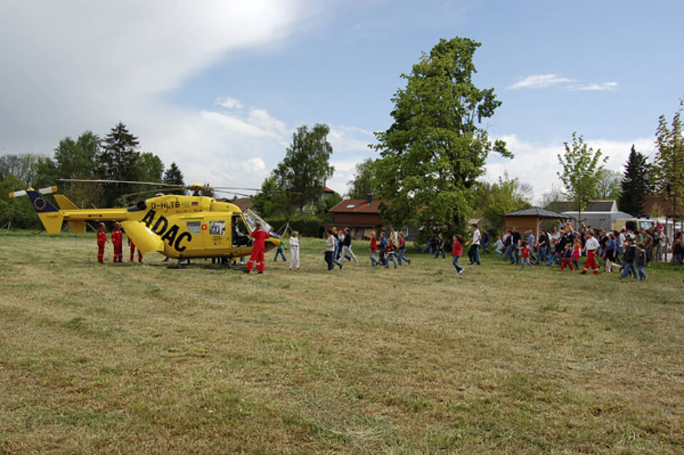 Bei strahlendem Sonnenschein begrüßten die Deisenhofener Rotkreuzler den ganzen Nachmittag über mehrere hundert Oberhachinger und Rotkreuz-Mitarbeiter aus befreundeten Gemeinschaften zum Tag der Offenen Tür unter dem Jahresmotto des Deutschen Roten Kreuzes "Integration". Bei mehreren Rettungs-Shows zeigten die ehrenamtlichen Mitarbeiter aus Jugendrotkreuz und Bereitschaft ihre Leistungsfähigkeit und gaben den interessierten Zuschauern Einblicke in den Ablauf eines Rettungsdienst-Einsatzes. Ganztägig nutzten die Gäste rege die Möglichkeit eines kostenlosen Gesundheits-Checks und der Auffrischung ihrer Erste-Hilfe-Kenntnisse. Die Kinder zeigten sich begeistert vom Angebot, sich realistisch aussehende Wunden schminken zu lassen und verfolgten gebannt die Zauber-Shows eines Jugendrotkreuzlers. Ein weiterer Höhepunkt waren die Besuche des Rettungshubschraubers "Christoph 1" der ADAC Flugrettung, der gleich zwei Mal auf der Wiese hinter dem Rotkreuzhaus an der Kybergstraße landete. Auch ein längerer Regenschauer hielt die Besucher des Tages der Offenen Tür nicht davon ab, ihn bis zur letzten Minute auszukosten.