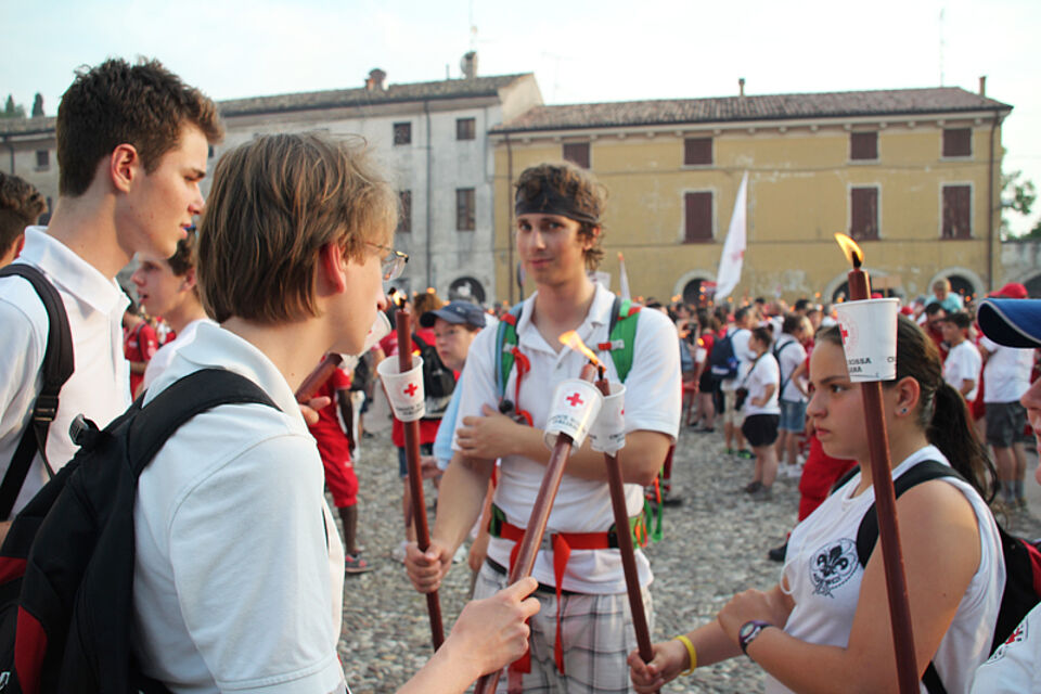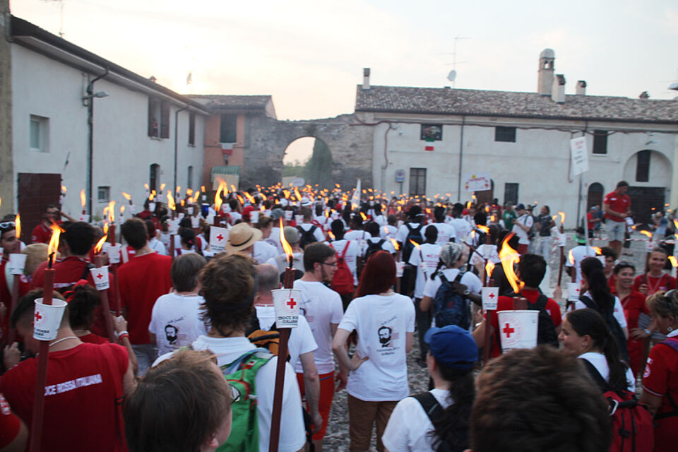 Jedes Jahr im Juni erinnern Tausende Helfer*innen der Rotkreuz- und Rothalbmondbewegung in Solferino bei der "Fiaccolata" (Fackellauf) an die Schlacht, die sich dort am 24. Juni 1859 ereignete. Henry Dunant, Gründer des Roten Kreuzes, erlebte damals diese Schlacht mit, organisierte die Verwundetenversorgung und schrieb seine Erinnerungen im Anschluss auf. Darin enthalten waren die Forderungen nach Gründung einer Hilfsorganisation und nach völkerrechtlichen Vereinbarungen für Kriegszeiten. So entstand 1863 die Rotkreuz- und Rothalbmondbewegung und 1864 das erste Genfer Abkommen.