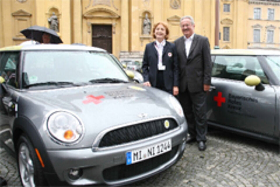 Im Rahmen des zukunftsweisenden Projektes "Drive eCharged" erhielt das Münchner Rote Kreuz von der BMW-Group, Siemens und Stadtwerke München insgesamt 10 MINI-E für zehn Monate zur Verfügung gestellt. Die offizielle Vorstellung des Projektes mit Übergabe der Fahrzeuge erfolgte am 13.09.2010 auf dem Odeonsplatz in Anwesenheit der Vorstände der Projektpartner und des Oberbürgermeisters Christian Ude sowie der Vorsitzenden des BRK-Kreisverbandes München Dr. Hildegard Kronawitter (im Bild mit OB Ude).
