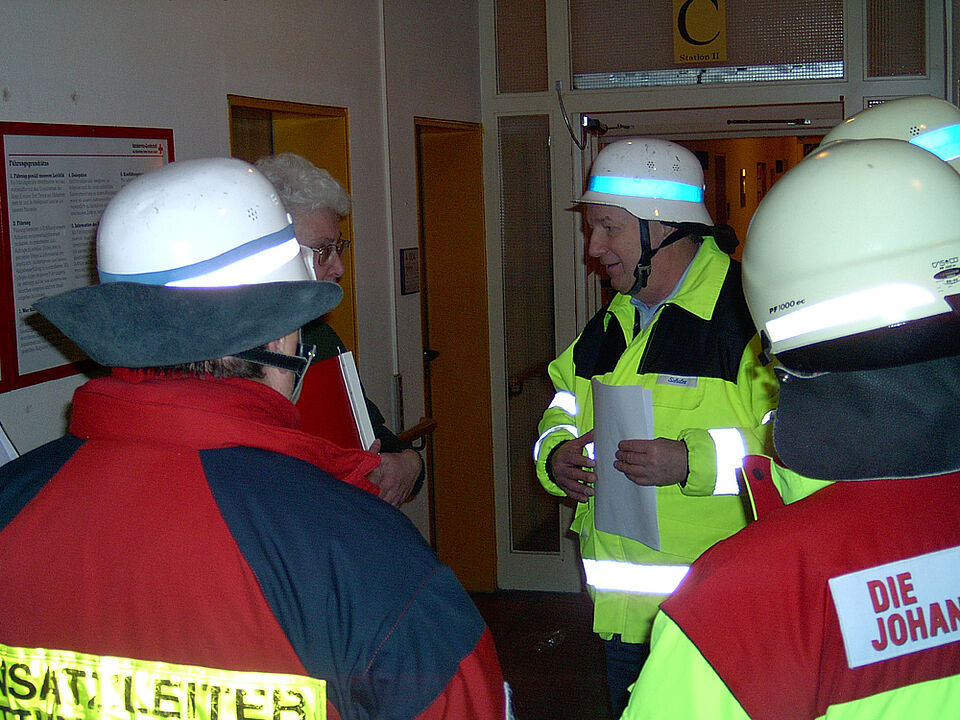 Auf Anforderung des Einsatzleiters Rettungsdienst betreuten und registrierten die ehrenamtlichen Helferinnen und Helfer daraufhin die unverletzten Bewohnerinnen und Bewohner, die nach einem Brand im vierten Obergeschoss in das Erdgeschoss des Gebäudes verbracht worden waren. Sie unterstützten und entlasteten so die Kräfte des Rettungsdienstes.