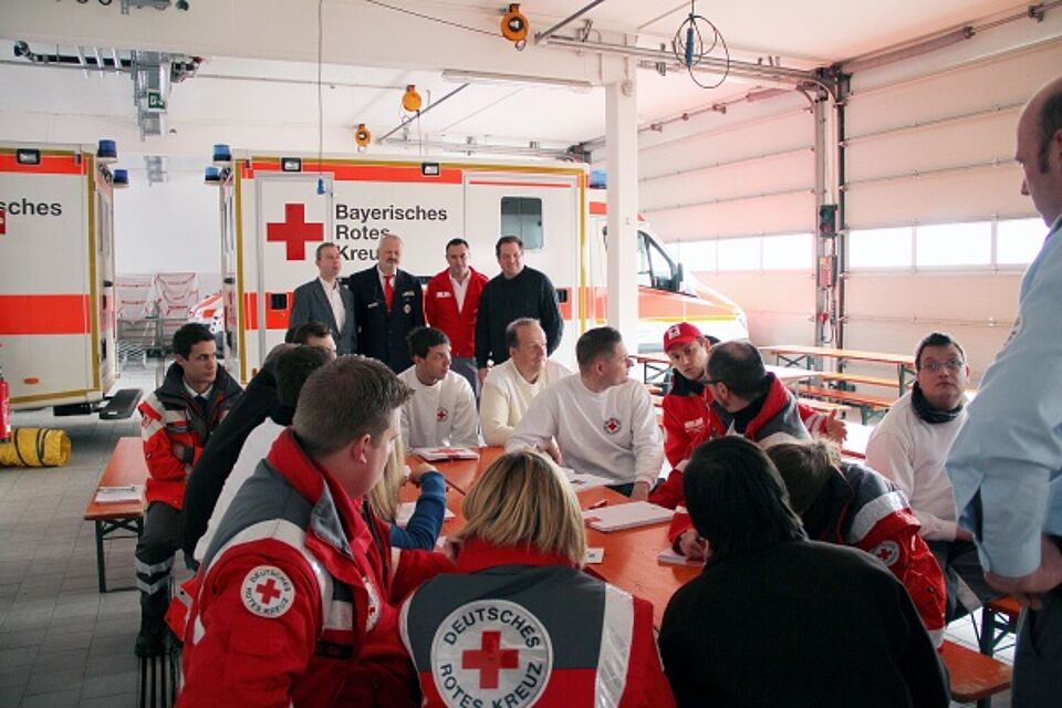 Im Vorfeld der Großübung ist es unerlässlich, die Katastrophenschutzhelfer aus Österreich und aus Bayern entsprechend in die Besonderheiten einer gemeinsamen Schadensbewältigung einzuweisen und vorzubereiten. Die Ausbildung der bayerischen Teilnehmer wird in drei Gruppen stattfinden. Eine erste Gruppe wurde nun in Traunstein von Dozenten des Österreichischen und Bayerischen Roten Kreuzes sowie von Vertretern der beiden Innenministerien aus Österreich und Bayern geschult. An dieser Schulung nahmen auch ehrenamtliche Helfer des Münchner Roten Kreuzes teil, die sich an der Übung beteiligen.
