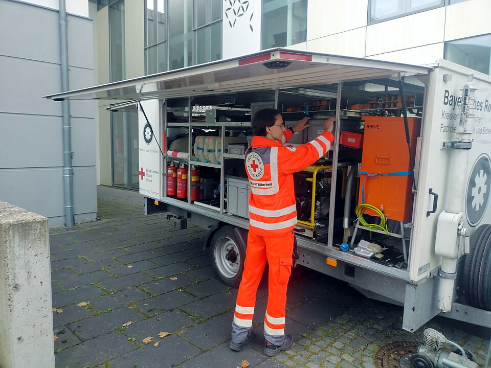 Am Sonntag, den 2. Juni wurde dann die SEG Technik und Sicherheit München alarmiert, um als Teil des Hilfeleistungskontingents Oberbayern nach Neuburg an der Donau auszurücken. Während des fünftägigen Einsatzes übernahmen die HelferInnen verschiedenste logistische und technische Aufgaben, um die Versorgung der umliegenden Notunterkünfte für die evakuierten Betroffenen sicherzustellen. In enger Zusammenarbeit mit den anderen Einheiten des Hilfeleistungskontingents unterstütze die SEG Technik und Sicherheit insbesondere bei der Einrichtung von Strom-, Wasser-, und Gasversorgung für mehrere Feldküchen, auf denen drei Mal täglich mehrere hundert Mahlzeiten für die Betroffenen zubereitet wurden. Ein weiterer Tätigkeitsschwerpunkt lag in der Beschaffung und dem Transport von Lebensmitteln aus Großhandelsgeschäften in der Umgebung.