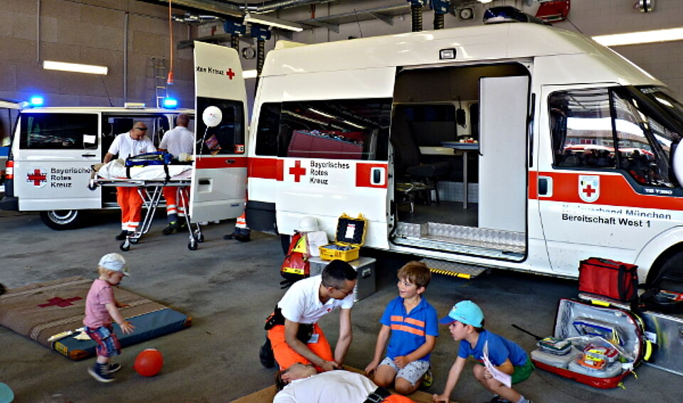 Anschaulich ist die „Erste Hilfe“-Kette vom Laien bis zur professionellen Rettung. Die Bereitschaftsjugend Höhenkirchen-Siegertsbrunn des Münchner Roten Kreuzes ist hier besonders aktiv.