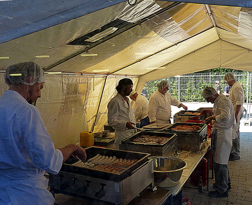 Hüpfburg und Brand-Torwand-löschen für die Kleinen, Museum und Führungen für die Großen machen Appetit. Gut, dass unsere Rotkreuz-Verpflegung hevorragend grillen kann. Bratwurst-Duft liegt in der Luft.