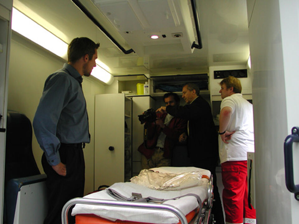 Für den Wort und Bild Verlag fand gestern ein Fotoshooting in und um einen RTW der Münchner Bereitschaften statt. Eine RTW-Besatzung und ein Patientendarsteller standen bereit, um die Leistungsfähigkeit und die Ausstattung eines Rettungswagens in einer Fotostrecke festzuhalten.