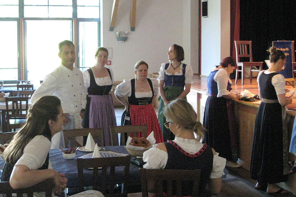 Gleichzeitig bereiteten sich knapp 20 ehrenamtliche Rotkreuzler im Bürgersaal zum Forstner auf das traditionelle Weißwurstessen der Vereine nach der Fronleichnamsprozession. Bereits am Mittwoch hatten sie die Tische dekoriert, die Schänke und die Küche bestückt. Als gegen 11 Uhr die ersten Gäste den Saal betraten, war alles vorbereitet.