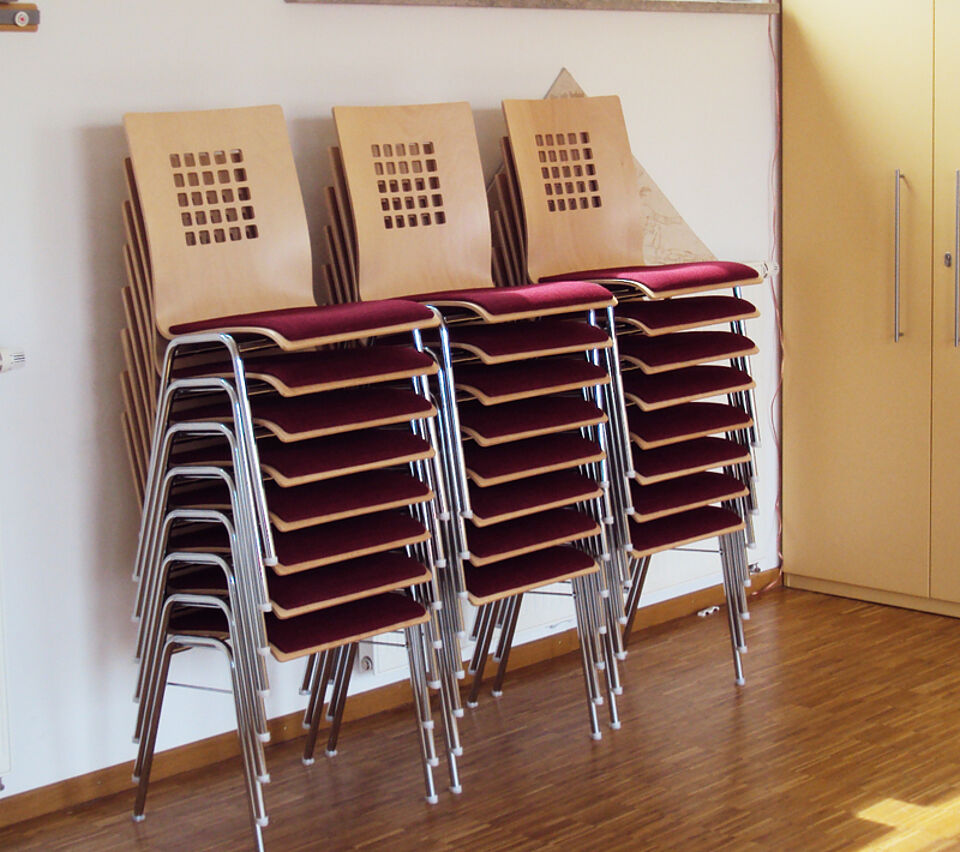 Zudem tauschten sie die Stühle im Lehrsaal aus, da die alten Stühle viele Beschädigungen aufwiesen und montierten eine neue Leinwand.