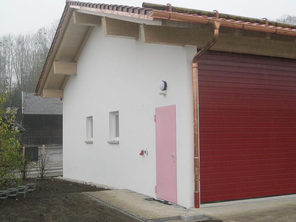Der Garagenanbau am Deisenhofener Rotkreuzhaus ist fast abgeschlossen. Mittlerweile sind die Elektro- und Malerarbeiten beendet und Türen, Fenster und Tore eingebaut. Der Hof ist fertig gepflastert, die früheren Parkplätze versetzt und selbst der alte Fahrradständer wieder im Boden fixiert. Nur eine Tür muss noch fertig gestrichen und einige kleinere Abschlussarbeiten erledigt werden.
