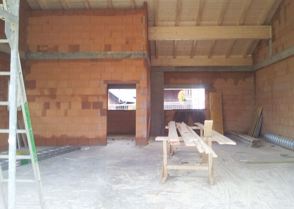 Auch der neue Lagerraum im Anbau und ein neues Lager im Bestandsteil sind bereits im Rohbau zu sehen. Als nächstes wird das Dach gedeckt, die Spenglerarbeiten ausgeführt und die Türen und Zargen eingesetzt.