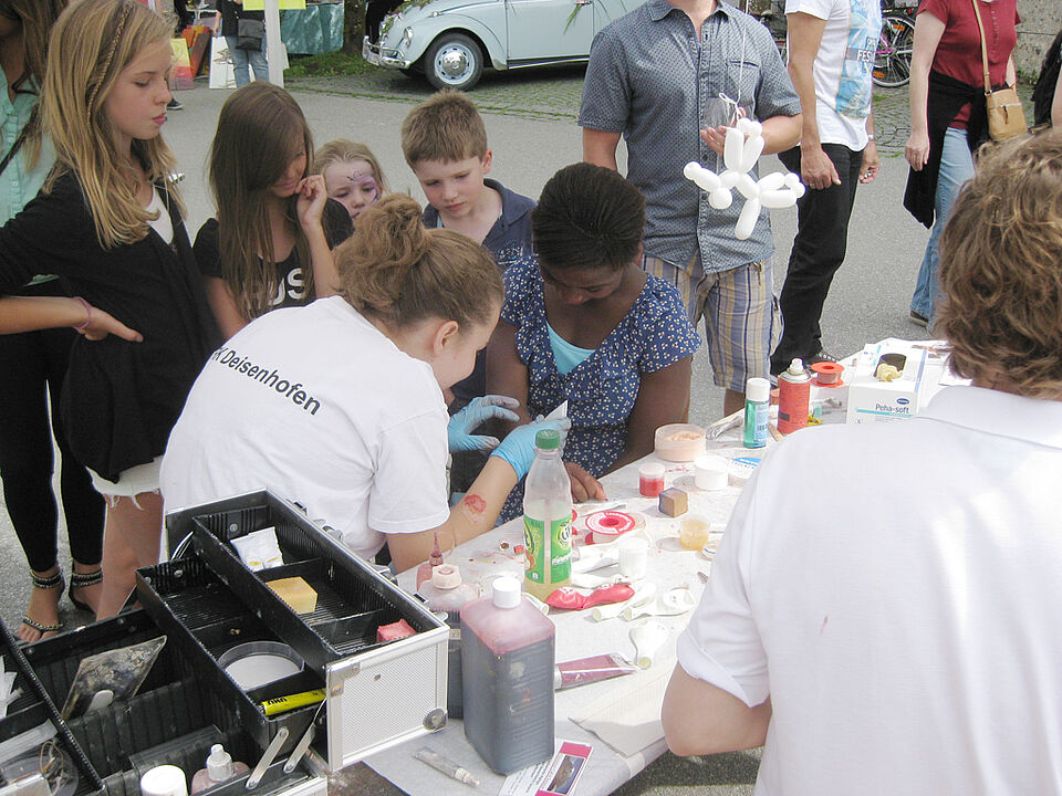 Das Jugendrotkreuz war jedoch der eigentliche Publikumsmagnet. Die Helfer schminkten täuschend echt aussehende Wunden und ließen die Kinder Rettungswagen basteln. Ihre Schminkkenntnisse nutzen die jungen Rotkreuzler sonst bei Übungen und Wettbewerben, um Patientendarsteller möglichst realistisch vorzubereiten.