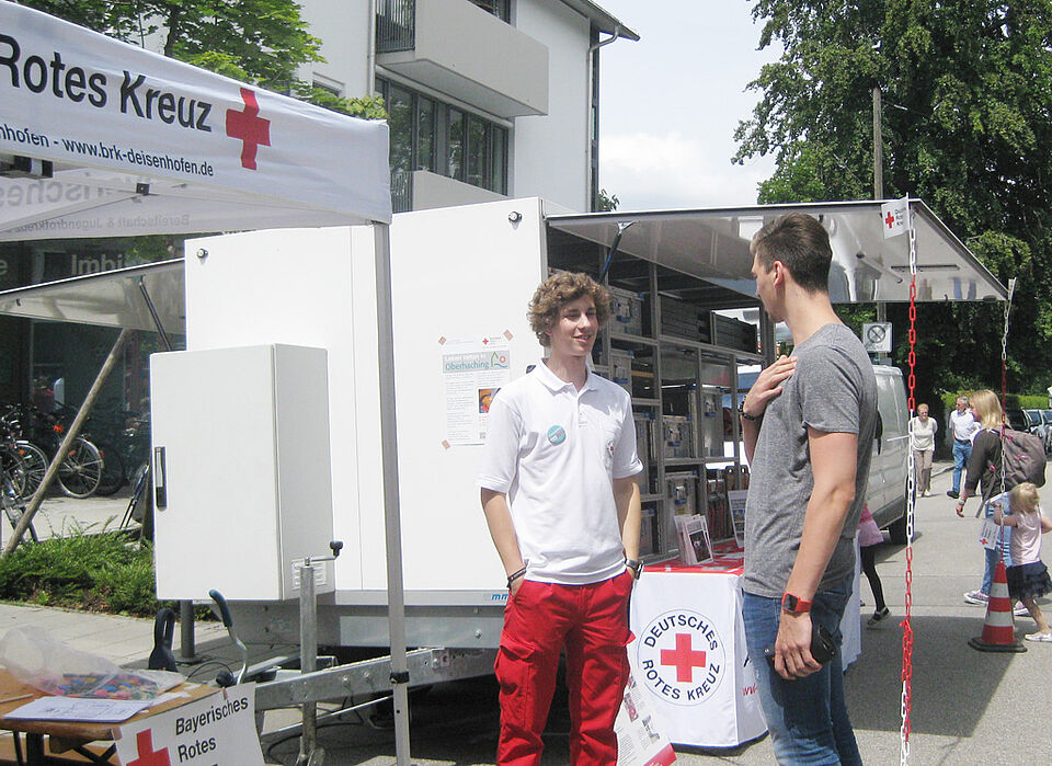 Jugendrotkreuz und Bereitschaft des Deisenhofener Roten Kreuzes beteiligten sich auch heuer am Straßenfest des Gewerbeverbandes Oberhaching. Die ehrenamtlichen Helfer stellten ihre Arbeit vor und erklärten den Besuchern den Geräteanhänger für den Katastrophenschutz.