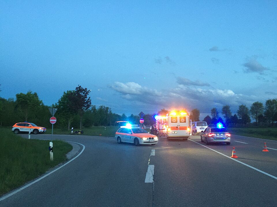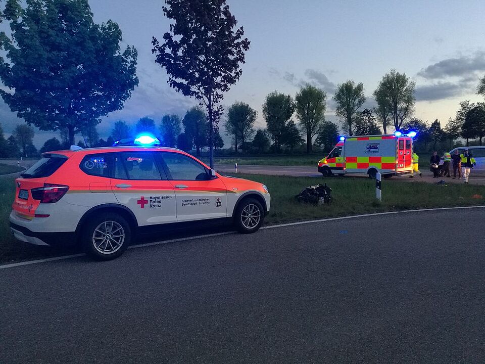Der schwerverletzte Motoradfahrer wurde an die knapp 10 Minuten später eintreffende Besatzung des Rettungswagens und den Notarzt aus München übergeben und die verletzte Autofahrerin an den Rettungswagen, der zur Unterstützung von der Leitstelle Erding aus Eching entsandt wurde.
