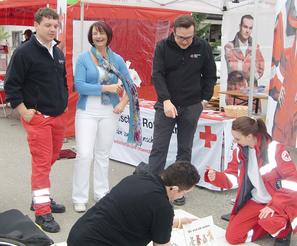 Auch das Rote Kreuz war dabei: Die ehrenamtlichen Helfer der Bereitschaft Sauerlach übernahmen nicht nur den Sanitätsdienst für die Veranstaltung. Sie informierten auch an ihrem Stand über ihr ehrenamtliches Engagement und viele andere Leistungen des Roten Kreuzes. An der Übungspuppe konnten Besucher die Wiederbelebung und die stabile Seitenlage üben und für die Kleinen gab es ein spannendes Riesen-Memory.