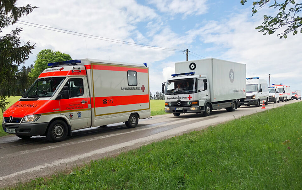 Das Münchner Rote Kreuz beteiligte sich mit 20 ehrenamtlichen Helfer*innen aus verschiedenen Einheiten an der Übung. Neben einer Schnelleinsatzgruppe (SEG) Transport und einem Teil einer SEG Behandlung, die direkt an den Übungsszenarien teilnahmen, waren auch ein Verpflegungstrupp und zwei Trupps des Fachdienstes Technik und Sicherheit aus München beteiligt. Diese sorgten für die Logistik, Versorgung und Verpflegung der Helfer*innen.