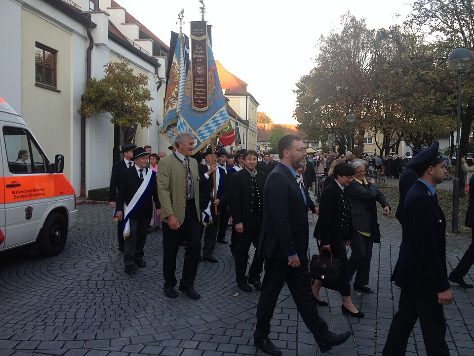 Im Rahmen seines 140-jährigen Gründungsfestes überreichte der erste Vorsitzende des Krieger- und Soldatenvereins Ismaning, Thomas Helk eine Spende über 150 Euro an das Bayerische Rote Kreuz, Bereitschaft Ismaning.