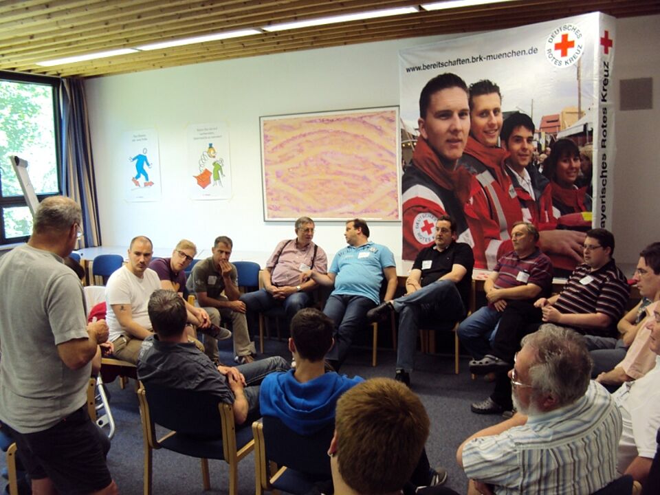 Bei der Ergebnispräsentation am Sonntag stellten die Gruppen ihre Dokumentation zu den Themen Finanzierung der ehrenamtlichen Bereitschaften, Verbreitung des Humanitären Völkerrechts, Einsatzstrukturen und Bevölkerungsschutz, Bekleidung, Selbstverständnis der Leitungskräfte, Prozesse und Strukturen der Konfliktbearbeitung im Roten Kreuz, Weiterbildung im Sanitätsdienst, gesellschaftliche Anerkennung ehrenamtlichen Engagements, Mitgliederaquise, Sanitätsdiensten Gebäudemanagement im Plenum vor.