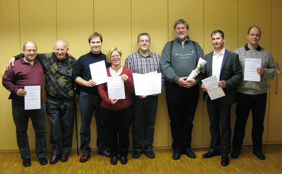 Er zeichnete Gerhard Schrade für fünf Jahre ehrenamtliche Mitgliedschaft aus. Zehn Jahre aktiv sind Anja und Andreas Heckenstaller, die Auszeichnung für 15 Jahre erhielt Dr. Dennis Ballwieser, sein Kollege Dr. Ulrich Pischa ist seit 20 Jahren dabei. Die Urkunde für stolze 25 Jahre aktive Mitgliedschaft erhielten Christian Bucher, Thomas Frimmer, Dr. Robert Hilge und Martin Kaiser. Auf 35 Jahre aktive Mitgliedschaft blicken Markus Stelzer, Thomas Wagmüller und Lutz Wallner zurück und Ottilie Linsmeier erhielt die Auszeichnung für 45 Jahre Mitgliedschaft. Gründungsmitglied Siegfried Jakob erhielt die Urkunde für 55 Jahre aktives Engagement. Leider konnten nicht alle Geehrten persönlich anwesend sein.