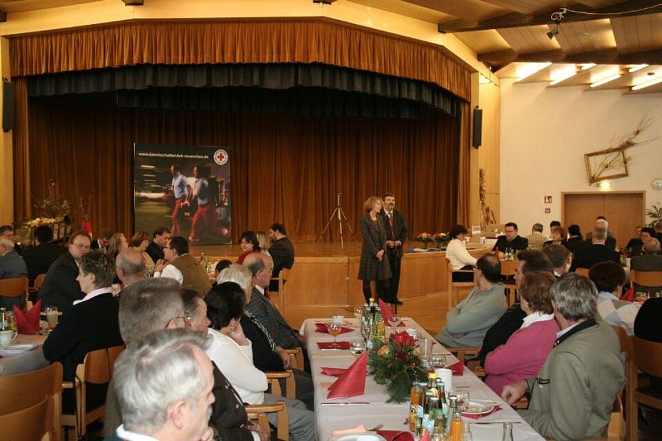 In seiner Rede dankte er allen Anwesenden für ihr Engagement und die vertrauensvolle Zusammenarbeit in diesem und den vergangenen vier Jahren. Er betonte auch, dass er mit seiner Kreisbereitschaftsleitung bei der Wahl 2009 erneut zur Verfügung stehe. Auch Hildegard Kronawitter, stellvertretende Vorsitzende des Münchner Roten Kreuzes, sowie Marion Ivakko, stellvertretende Kreisgeschäftsführerin, sprachen Grußworte. Auch sie dankten den Ehrenamtlichen für ihren unermüdlichen Einsatz.