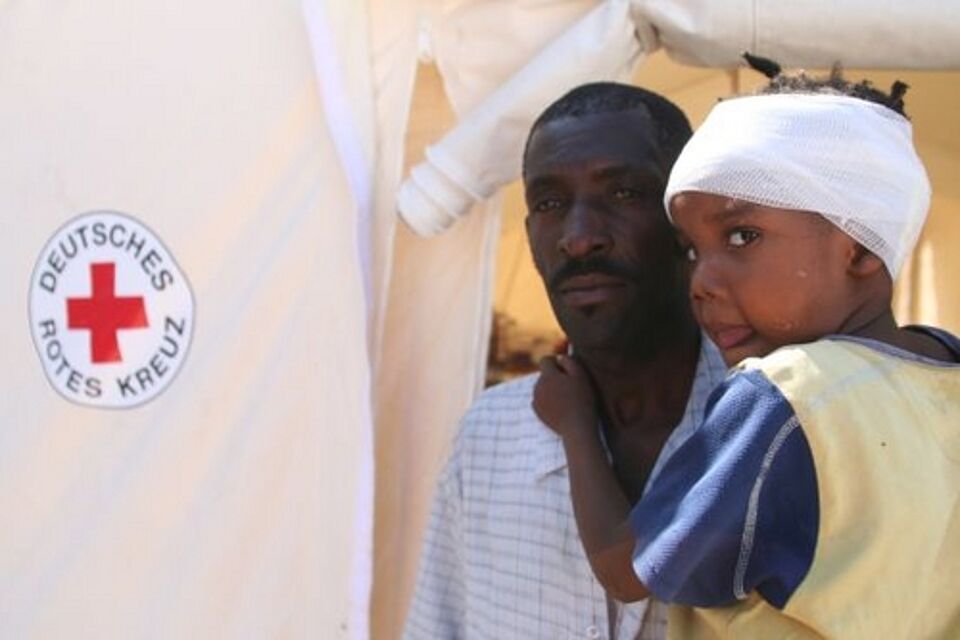 Die Krankenhäuser im Erdbebengebiet um Port au Prince sind überfüllt. Sie können niemanden mehr aufnehmen. Vor den Einrichtungen liegen Patienten auf der Straße und warten darauf, behandelt zu werden. Die Helfer in der Rotkreuz-Gesundheitsstation arbeiten auf Hochtouren, um die Patienten zu versorgen.