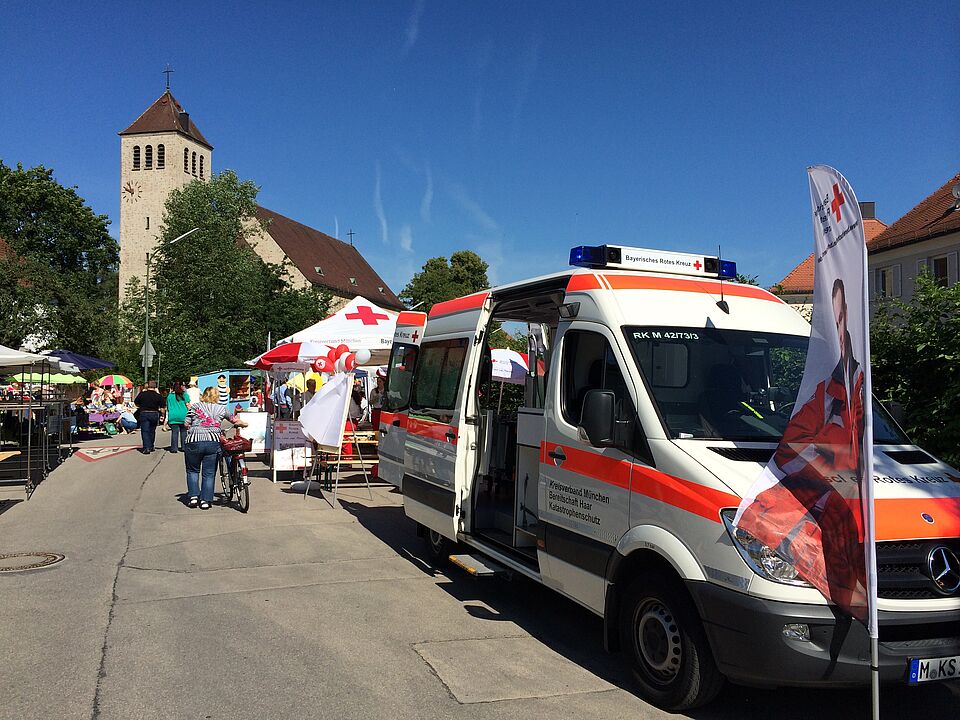Am 6.07.2014 fand in der Ortsmitte von Haar wieder die alljährliche Künstlermeile statt. Die BRK Bereitschaft Haar war wieder mit einem großen Informationsstand vor Ort. Dort wurden interessierte Bürger über die Arbeit des Bayerischen Roten Kreuzes und der Bereitschaft Haar ausführlich informiert. Bei einem Gesundheitscheck konnten Blutdruck, Blutzucker und Sauerstoffsättigung überprüft werden. Für die kleinen Besucher gab es die Möglichkeit sich Verletzungen durch unsere Mimentruppe schminken zu lassen. Außerdem konnte unser Einsatzfahrzeug der Schnelleinsatzgruppe Transport besichtigt werden.