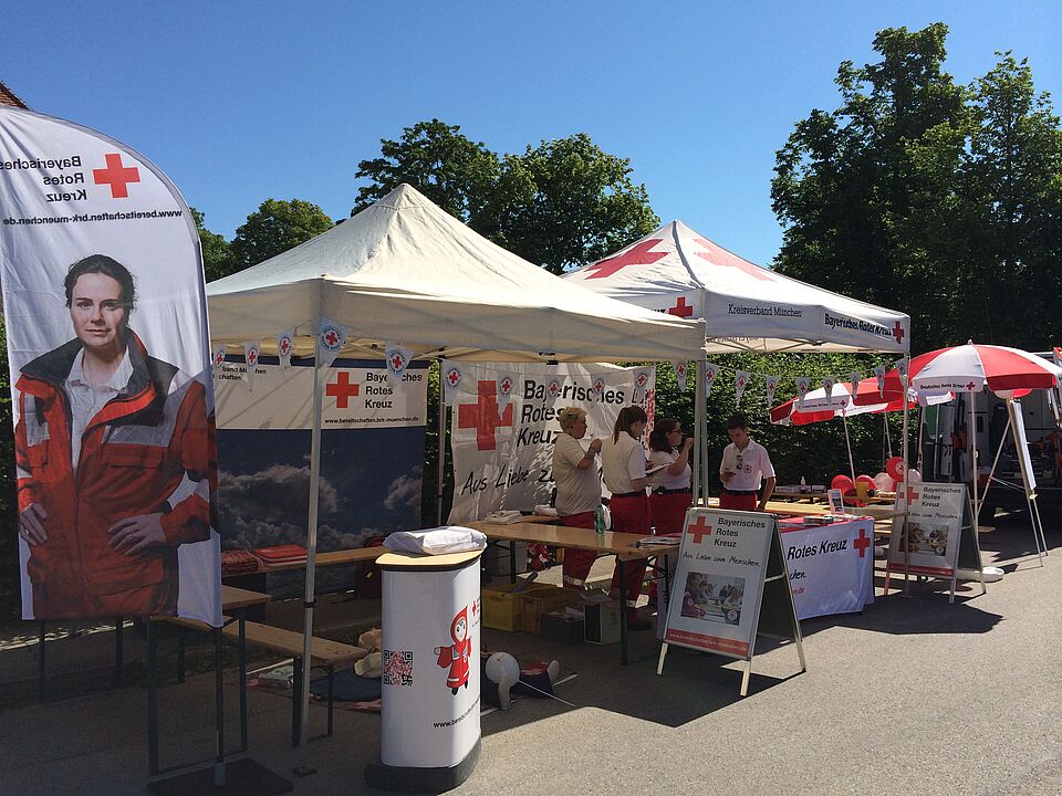 Neben der Information der Bürger gehörte auch die medizinische Absicherung der Besucher zu unseren Aufgaben. Insgesamt versorgten die Helferinnen und Helfer 18 Patienten. Hauptsächlich handelte es sich hierbei um hitzebedingte Kreislaufbeschwerden und kleiner chirurgische Versorgungen. Eine Patientin klagte über Brustschmerzen. Sie konnte durch unsere Einsatzkräfte stabilisiert werden und wurde anschließend zum Ausschluss eines Herzinfarktes durch den Rettungsdienst in eine Münchner Klinik transportiert.