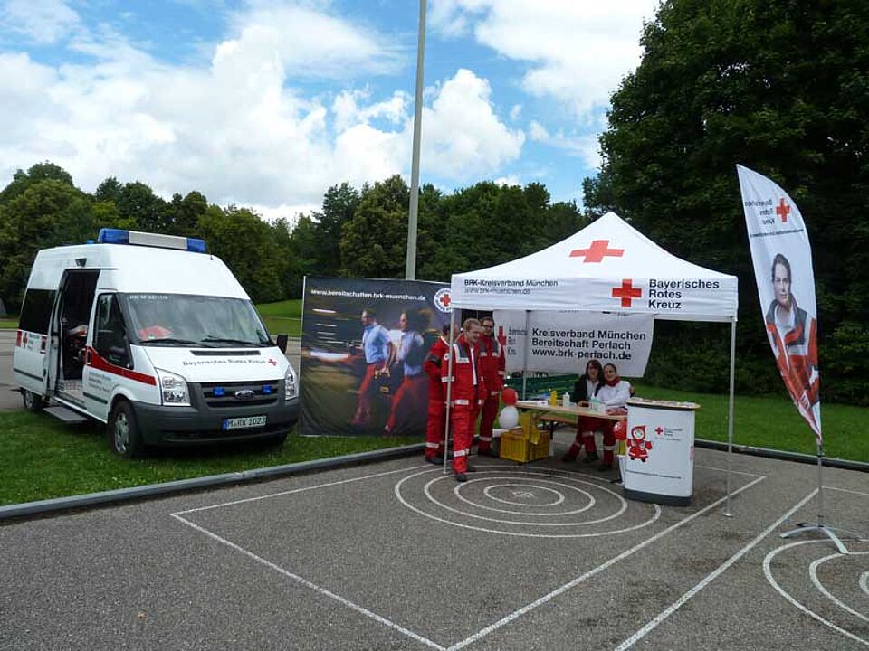 So informiert die Bereitschaft Perlach über Angebote des Roten Kreuzes, Wege des ehrenamtlichen Engagements und bietet einen kostenlosen kleinen Gesundheitscheck.