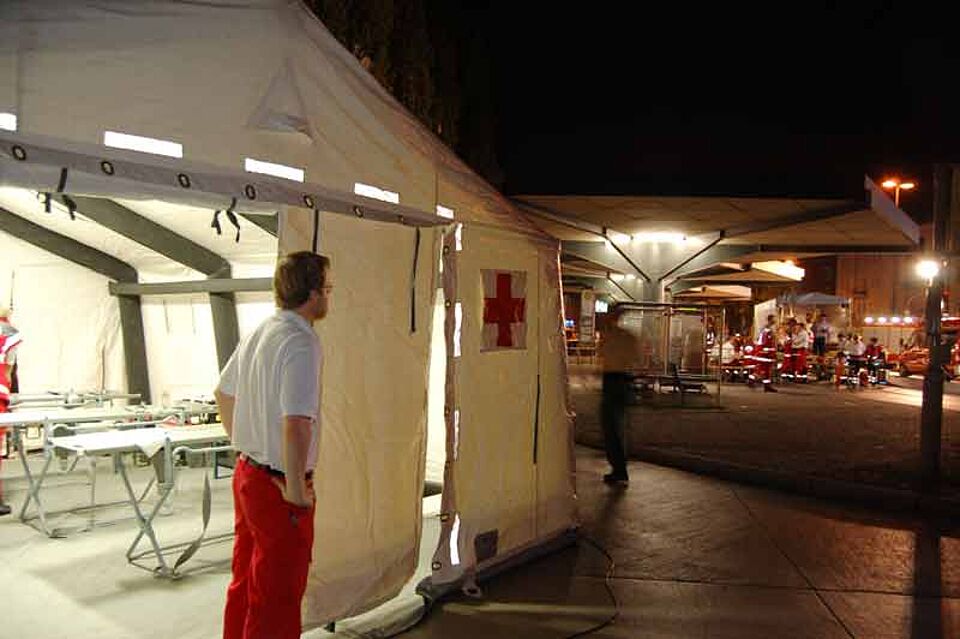 Das Münchner Rote Kreuz war mit mehreren Dutzend ehrenamtlichen Helfern bis weit nach Mitternacht an Ort und Stelle.
