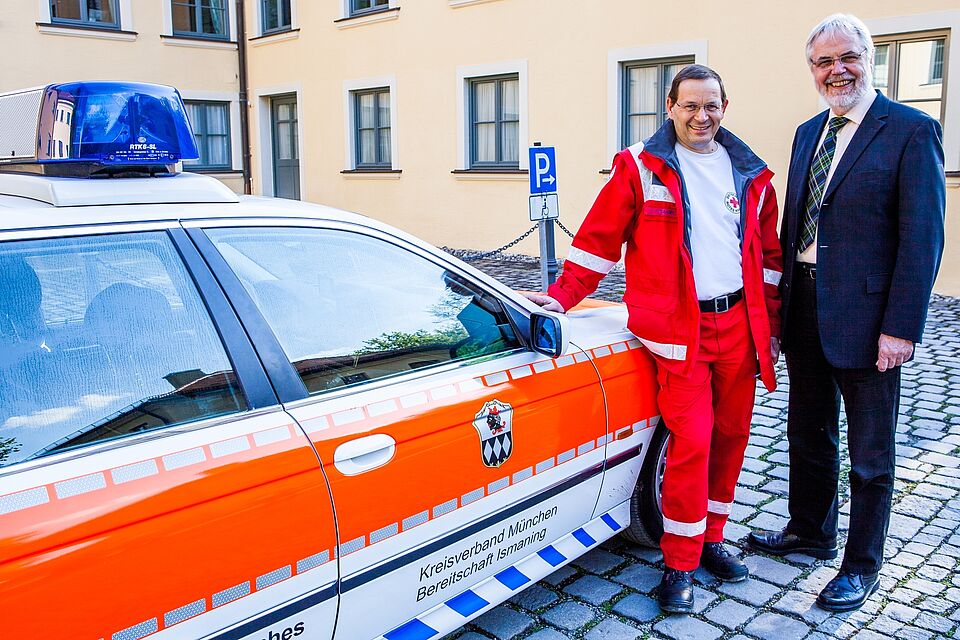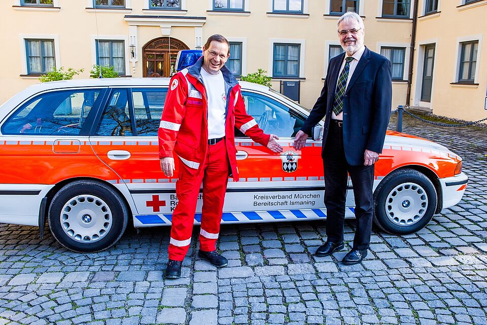 Die Gemeinde Ismaning hatte zuvor der BRK Bereitschaft die finanzielle Mittel zur Anschaffung eines gebrauchten Einsatzfahrzeugs zur Verfügung gestellt. Beschafft wurde von den Mitteln ein BMW 525tds, Baujahr 1999, der zuvor bei der Feuerwehr in Menden als Notarzt-Einsatzfahrzeug im Dienst war. „Das Fahrzeug ist in sehr gutem Zustand und erfüllt alle Anforderungen für den Einsatz als Helfer vor Ort“, so Bereitschaftsleiter Fried Saacke. „Es war unser Ziel mit einer kostengünstigen Lösung möglichst kurzfristig ein eigenes Einsatzfahrzeug für den Helfer vor Ort zur Verfügung zu haben.“