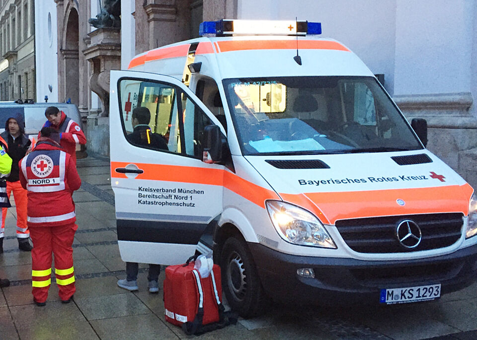 Am Faschingsdienstag betreute das Münchner Rote Kreuz mit 54 ehrenamtlichen Helfer*innen und zwei Ärzten München narrisch und den Tanz der Marktfrauen am Viktualienmarkt.
