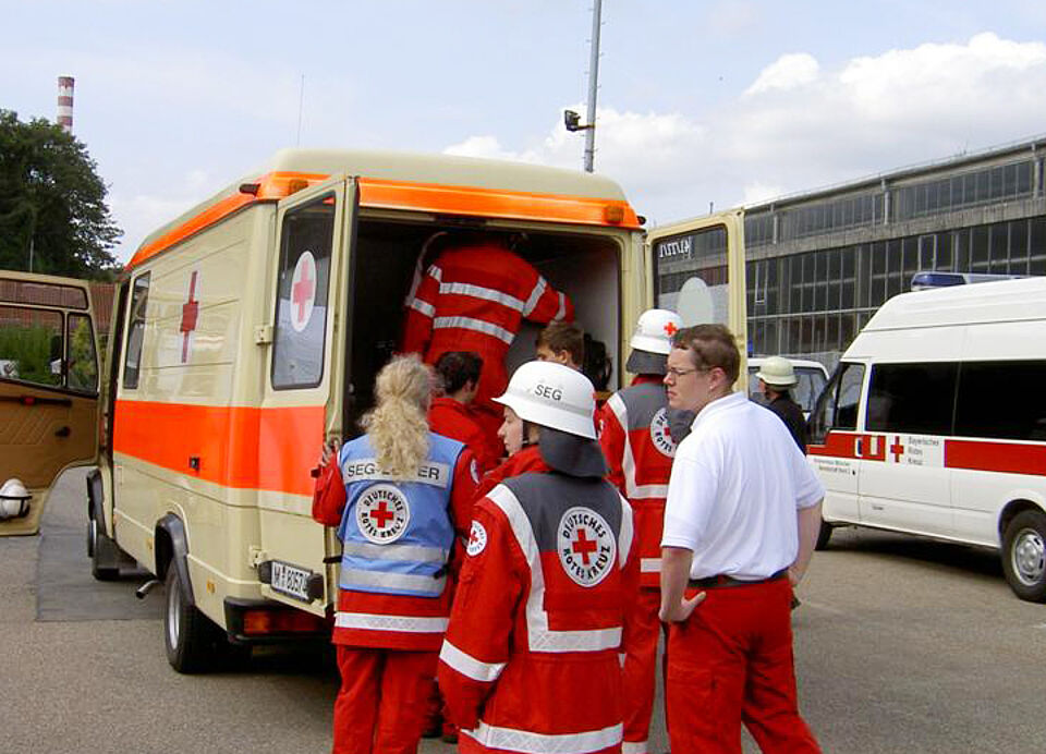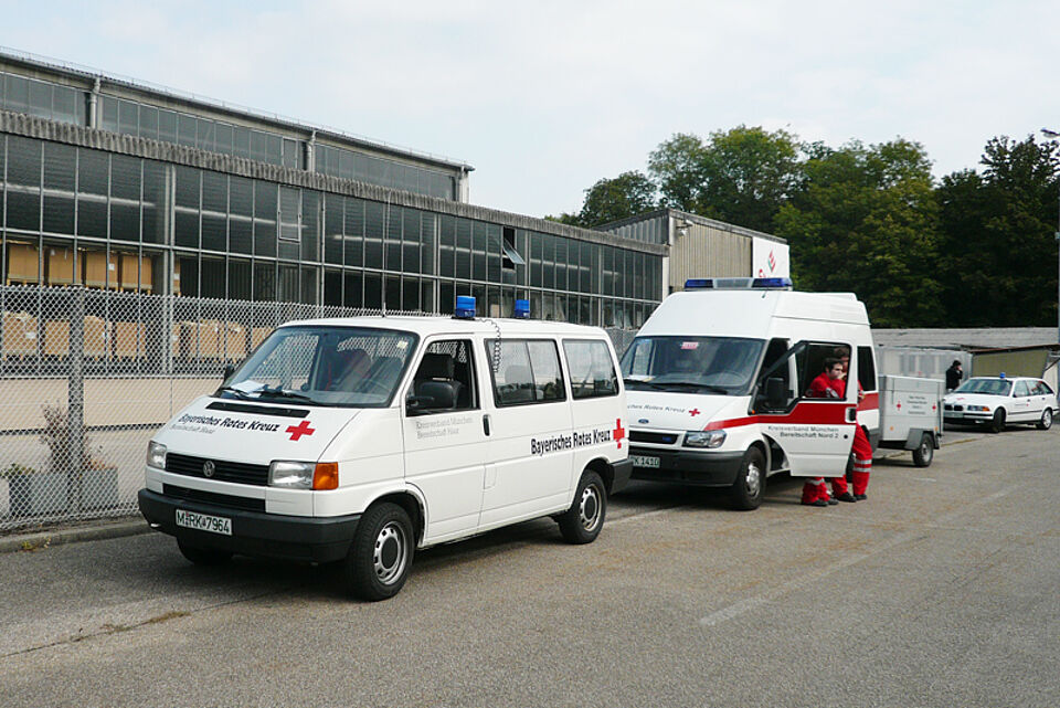 Die ehrenamtlichen Helfer unserer Schnelleinsatzgruppe waren etwas überrascht, als sie gestern gegen 8:30 Uhr von ihren Piepsern geweckt wurden. Denn statt auf einen echten Einsatz ging es für sie nach Neuburg zu einer groß angelegten Übung des Roten Kreuzes in Oberbayern. Das Ziel: herauszufinden, wie lange es dauert, Helfer überregional zu alarmieren, zusammenzuführen und sie einen Behandlungsplatz aufbauen zu lassen.