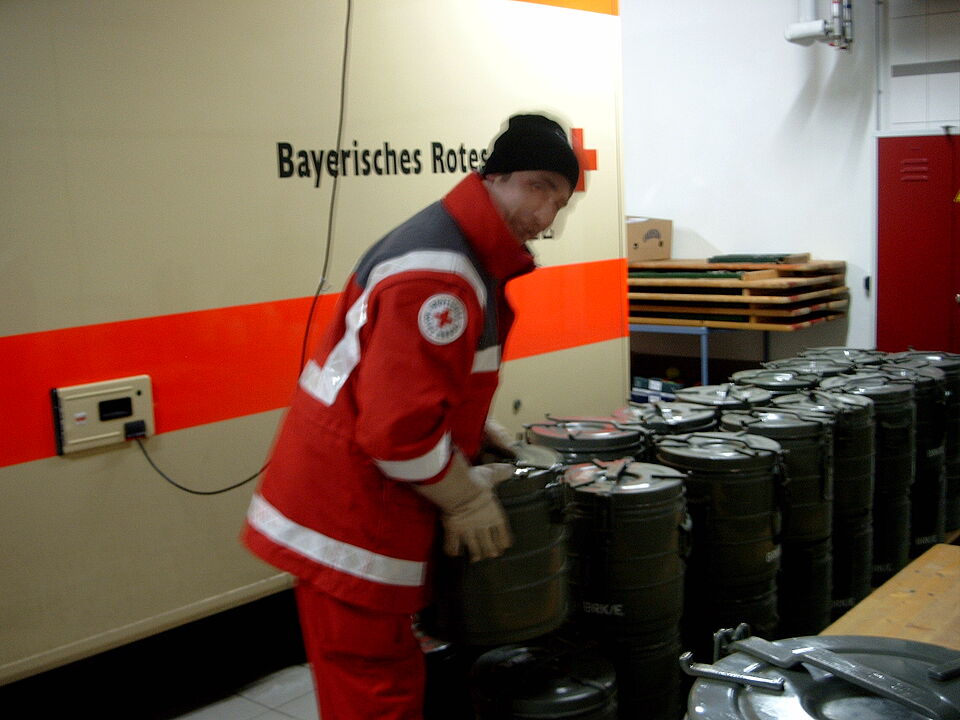 Ein Hilferuf der Kollegen aus Regen erreichte uns am späten Sonntag Abend: die Zahl der Verpflegungsteilnehmer steige, es würden zusätzliche Warmhaltebehälter für Speisen und Getränke, so genannte Thermophore, benötigt. Kein Problem für das Münchner Rote Kreuz: bereits zwei Stunden später war ein LKW des