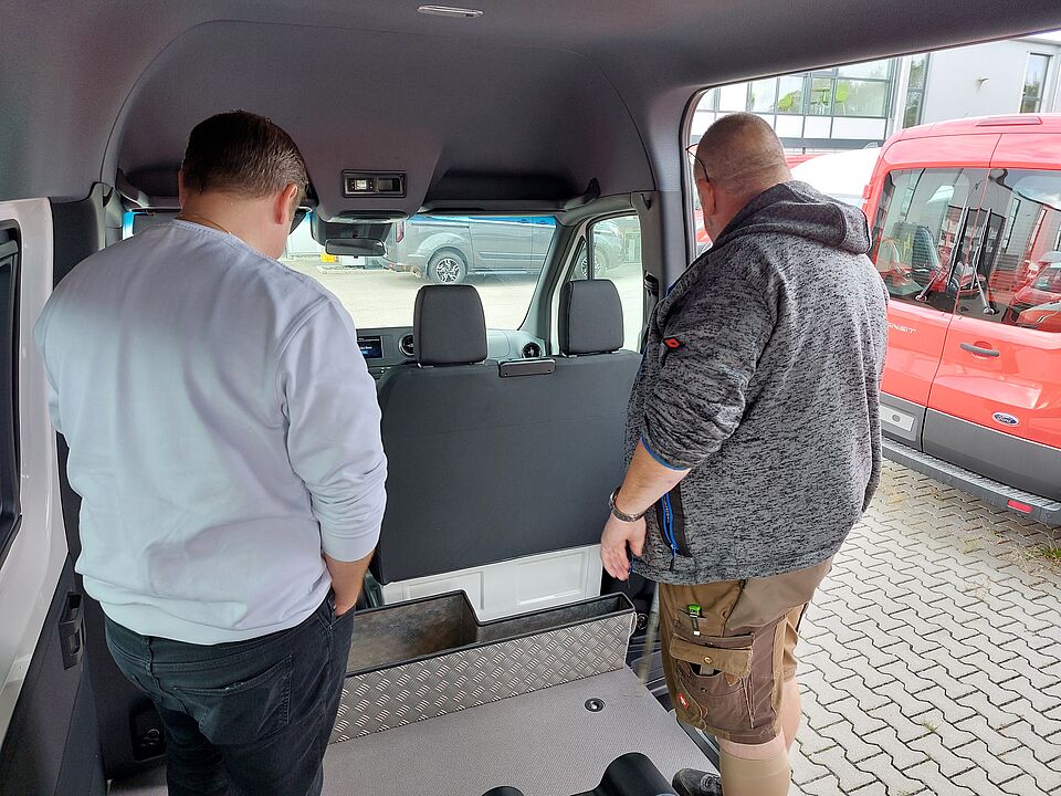 In Bingen wird der Originalboden gegen einen flexiblen Systemboden getauscht. Zudem werden die Sitze im Fahrgastraum, eine Rampe und Rückhaltesysteme für den Rollstuhltransport und schließlich ein Tisch und der Schrank für das Einsatzmaterial eingebaut. Diese Arbeiten sollen bis Ende November 2024 abgeschlossen sein. Bereits jetzt ist klar, dass das für Tisch und Schrank nicht klappen wird, weil der Schreiner ca. sechs Monate für die Ausführung braucht.