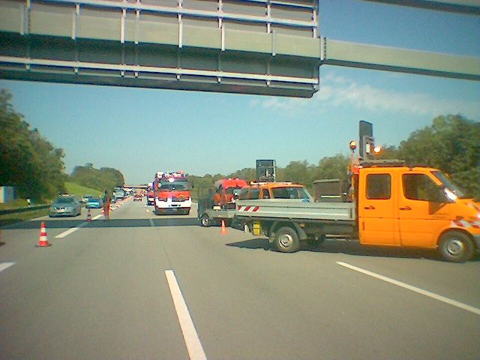 Unterstützungsgruppe Sanitätseinsatzleitung (UGSanEL) registrierte die Verletzten und koordinierte den Transport in umliegende Krankenhäuser. Die Autobahn wurde für die Rettungsarbeiten voll gesperrt.