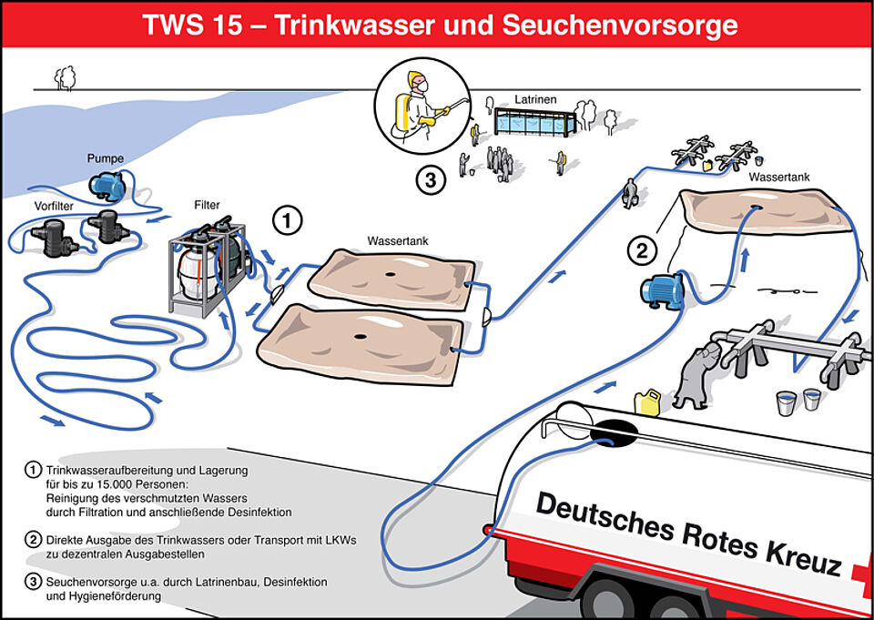 Die Hilfslieferung soll am 25. August in den frühen Morgenstunden lokaler Zeit in Islamabad landen. Die TWS 15 wird voraussichtlich in der stark betroffenen Region Sindh im Süden des Landes eingesetzt werden. Sie kann ihren Betrieb binnen 24 Stunden nach Eintreffen am Einsatzort aufnehmen. Das aufbereitete Wasser wird direkt an die Menschen verteilt oder mit Tankwagen zu ihnen gebracht. Die deutsche Bundesregierung unterstützt diesen humanitären Einsatz.