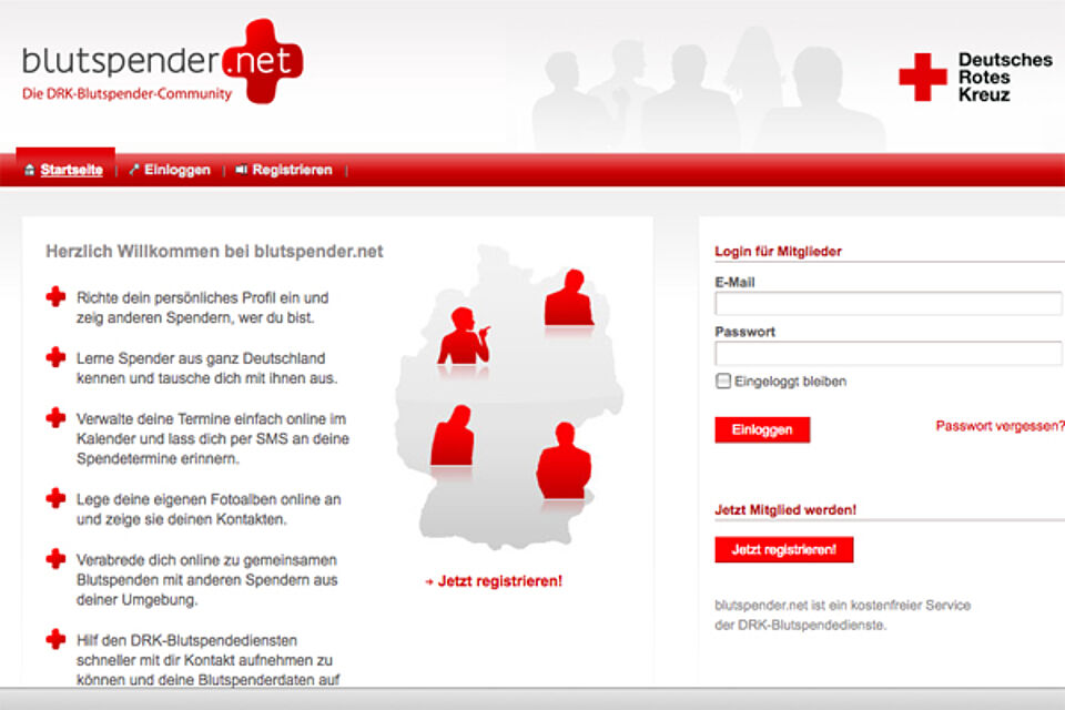 Hier sollen sich interessierte Blutspender austauschen, sich zum Beispiel aber auch per E-Mail oder SMS an ihren nächsten Blutspendetermin erinnern lassen können. Neben einer Terminsuche für ganz Deutschland bietet das Portal auch Funktionen wie eine Pinnwand oder eine Fotogalerie.