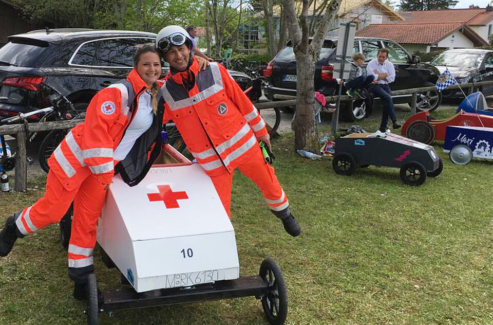 "Das Rennen war eine Riesengaudi und eine schöne Abwechslung", freut sich Thomas Wagmüller, stellvertretender Leiter des Deisenhofener Roten Kreuzes und Seifenkisten-Copilot. "Und es war eine echte Teamleistung, von der Konstruktion über Training und Rennen bis hin zu den jubelnden Fans an der Strecke."