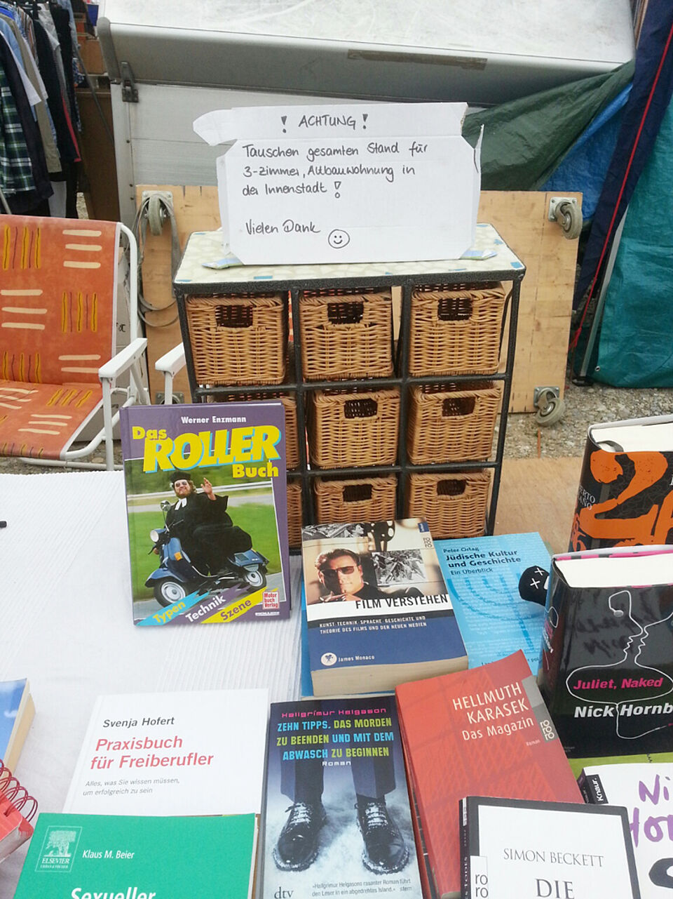 Bei soviel Optimismus spielte das Wetter dann doch noch mit: der befürchtete Regen blieb aus, sogar die Sonne ließ sich vereinzelt blicken. Bei überwiegend bewölktem Himmel konnten geschätzte 50.000 Besucher am Samstag auf der Theresienwiese beim Riesen-Flohmarkt ihrer Leidenschaft nachgehen und aus einem umfangreichen Angebot wählen, um die Preise feilschen, kaufen und ihre Schätze nach Hause tragen.