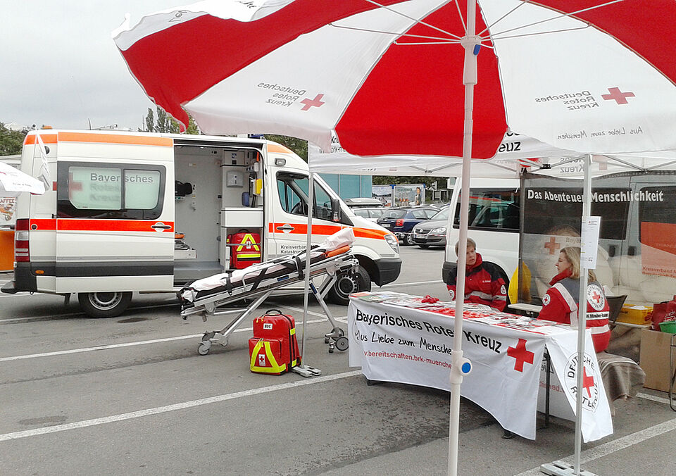 Die ehrenamtlichen Helfer der Bereitschaft Trudering des Münchner Roten Kreuzes beteiligten sich am 30. und 31. Mai mit einem Infostand an der Jubiläumsfeier zum 25. Geburtstag des V-Markt in der Balanstraße. Sie informierten über die ehrenamtliche Arbeit des Roten Kreuzes und zeigten den interessierten Besuchern einen Krankenwagen. Ein Helfer der Bereitschaft Zentral 1 unterstützte die Truderinger Kollegen.